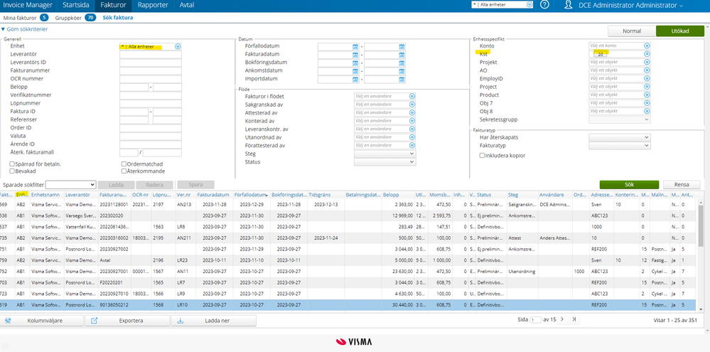 I Söken har du nu möjlighet att söka på konton och objekt för samtliga företag/enheter om värden finns i samma register i redovisningen dvs samma databas.