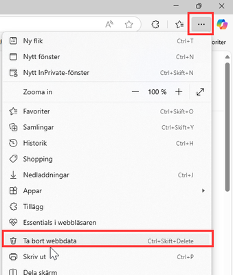 1. Klicka på de tre punkterna upp till höger > Ta bort webbdata