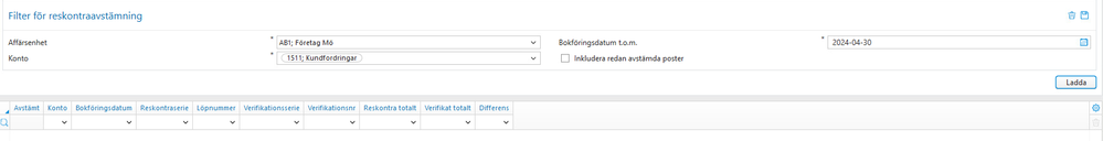En liknande avstämning finns för leverantörsreskontran under Inköp / Avstämning.