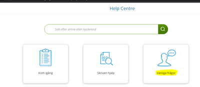 Det finns även en meny med där man kan få svar på vanliga förekommande frågor. Dessa frågor och svar uppdateras kontinuerligt.