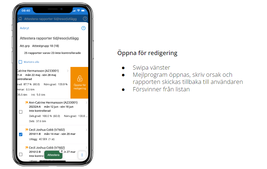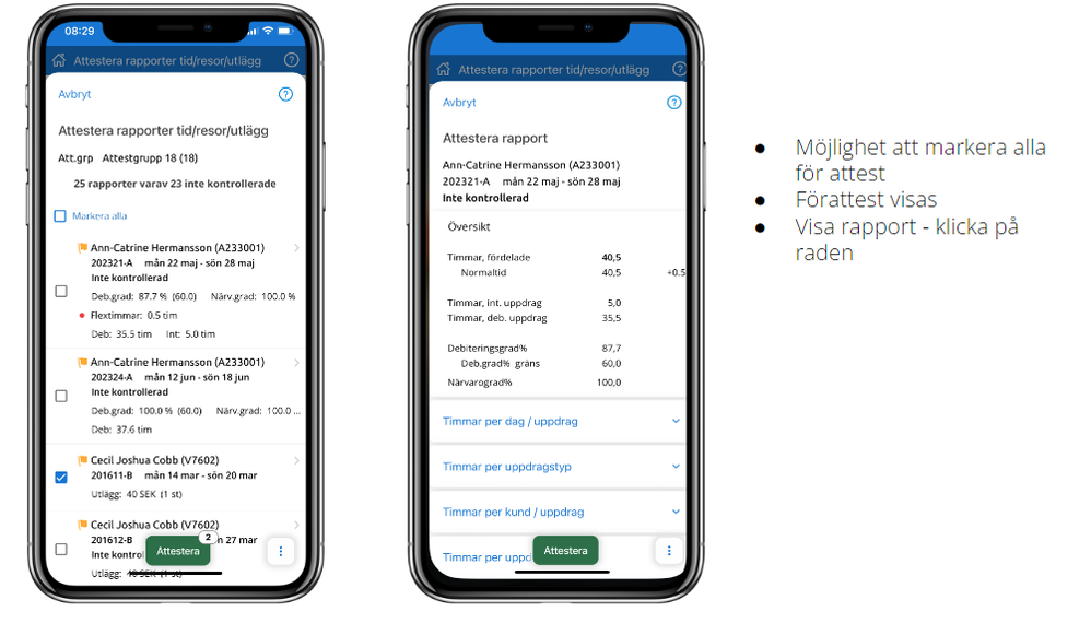 Förutom tidrapportering kan man även attestera sina medarbetares rapporter.