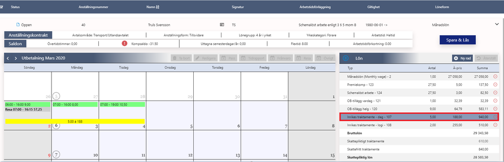 Inrikes traktamente – logi: Samma sak här, vill jag se var denna beräkning kommer ifrån så klickar jag på raden som presenterar logi.
