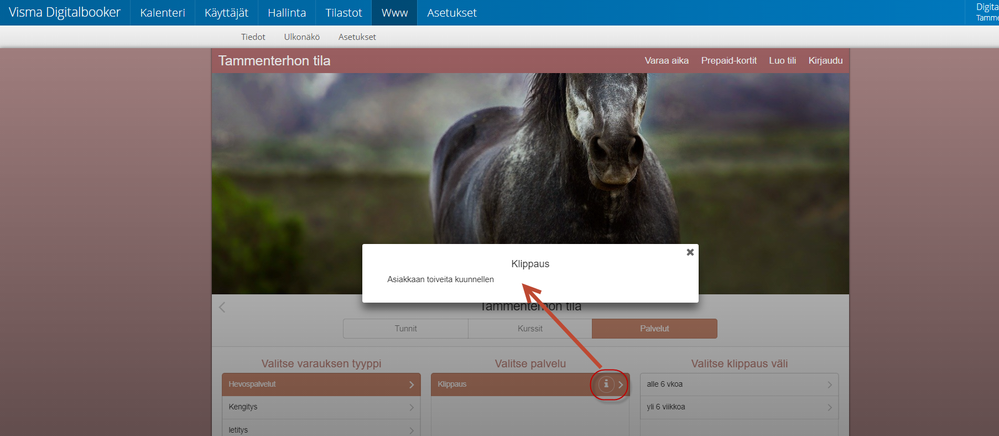 Info-ikoni ilmestyy heti palvelun perään asiakaspuolella.