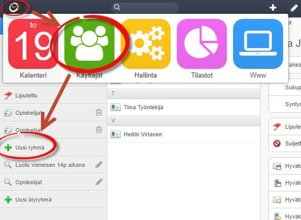 Ryhmiin on helppo lisätä asiakkaita ja poistaminen käy helposti. Lisätääksesi ryhmäkohtaisia hintoja luo ensin käyttäjäryhmä kohdasta käyttäjät -> Uusi ryhmä.