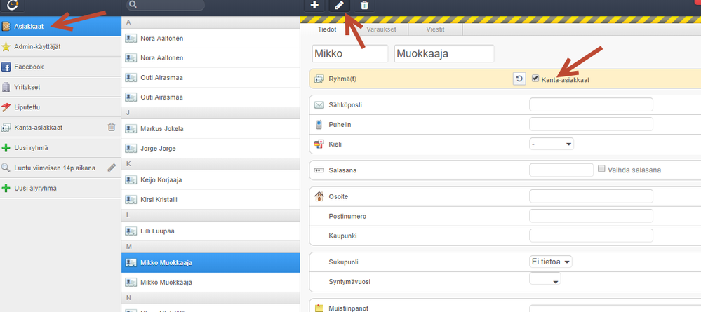 Voit lisätä haluamasi asiakkaan ryhmään milloin vain. Mene kohtaan Käyttäjät -> Valitse oikea asiakas -> Ota muokkaustila käyttöön -> Klikkaa päälle Ryhmät -kohdasta ja tallenna.