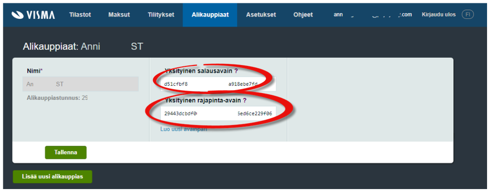 2. Mene Alikauppiaat-välilehdelle. Täältä löydät Alikauppiastunnuksen sekä yksityiset avaimet.