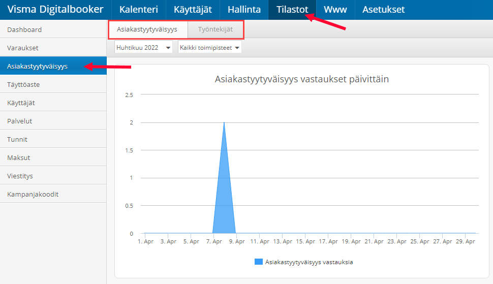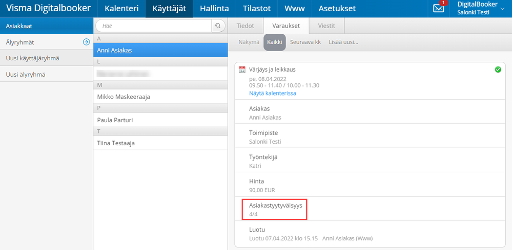 Asiakastyytyväisyys-palautteet Digitalbookerissa