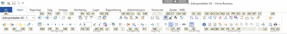 Det var spesielt de knappene som ikke allerede har noen offisielle tastatursnarveier jeg var ute etter, så i vinduet for alle ordre i visma business trykket jeg ALT + H som viser meg hvilke snarveier som gjelder for de grafiske knappene på Hjem-fanen når man ser på "Alle ordre".