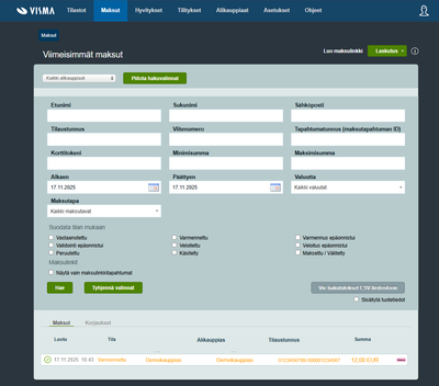Päivitetty vuodenvaihdeopas on julkaistu Visman Ohjeet-sivustolle.