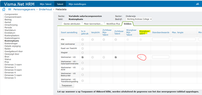@Nbastiaanse  Dank voor deze tip! Het stond bij ons uit in de metadata. Nu heb ik bij Werknemer-VO een vinkje gezet bij In gebruik en Zichtbaar Talent. Ik kan alleen geen vinkje zetten bij Wijzigbaar Talent (zie printscreen). Hoe kan ik dat aanvinken?
