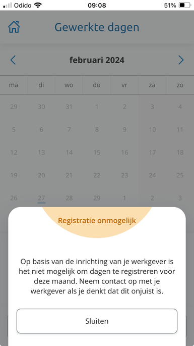 @Bastiaan Friederichs zojuist via het ticket al aangegeven. Het probleem is opgelost en de gewerkte dagen geeft geen melding meer. Probleem is opgelost.