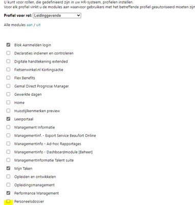 Beide opties leiden tot dezelfde aanpassing inderdaad. De switch in de autorisatiemodule van Personeelsdossier zet ook de module 'Personeelsdossier' aan of uit in het autorisatieprofiel.