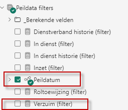 Hoi @Schiff01 dit hoef je niet zelf te bouwen. Want dit hebben wij al toegevoegd aan het model. Je kan namelijk een slicer maken met "Peildatum" uit de entiteit "Peildata filters". Vervolgens moet je aan de visualitie waarin de ziekte gegevens staan in de Filters op deze visual het filter veld Verzuim (filter) slepen. Dit filter moet je vervolgens gelijkstellen aan 1. Dan krijg je alle actieve ziektegevallen in de gekozen periode / op de gekozen datum afhankelijk van de gekozen slicerinstellingen.