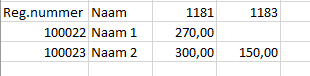Vervolgens heb ik de uitvoercodes 1181 en 1183 gekozen (naast een jaar en een maand).