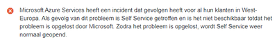 Azure probleem in west Europa volgens de berichtgevingen: Self Service niet beschikbaar