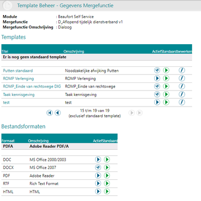 Binnen Templatebeheer kun je meerdere bestandsformaten op actief zetten. Als standaardformaat is voor de mergefunctie gekozen voor PDF/A, dus in dat formaat worden de documenten in Self Service gegeneerd. Nu wil ik ook binnen dezelfde mergefunctie Worddocumenten genereren. DOCX staat 'actief', maar ik heb nog niet ontdekt hoe ik een specifieke template kan koppelen aan dat formaat. Alles blijft er nog als pdf uitrollen. Hoe kan ik de ene template er als Word document uit laten rollen en de andere als pdf?