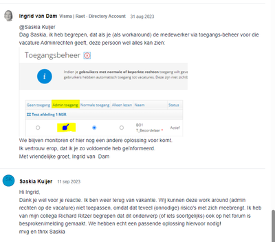 Hi @Lieke Sterk Huis Ik heb destijds een ticket ingeschoten, het probleem wordt veroorzaakt als iemand op een later moment aan een vacature wordt toegevoegd. En dat die persoon die kandidaten vanaf dat moment zag. EC gaf aan, dat dat zo hoorde, ik zei van niet 😉 Maakt niet uit op welk moment je aan een vacature wordt toegevoegd, je moet alle kandidaten die op die vacature gesolliciteerd hebben kunnen zien.