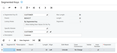 Please have a look at your Segment Keys for customer(ScreenId=CS202000):