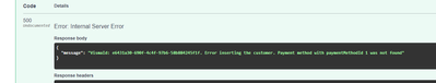 Response: InternalServerError {"message":"VismaId: 6e4ccc27-f873-4d4e-8a14-410ae61564aa. Error inserting the customer. Object reference not set to an instance of an object."}.