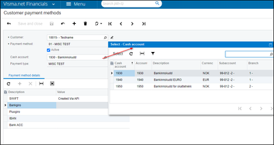 In order to be able to Create a Customer Payment with specific PaymentMethod and Cash Account,