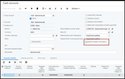 Regarding having multiple branches in your company and if those accounts are defined as branch-specific,