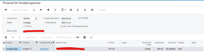 If possible, it would be nice if we were able to choose if we want to get the prices attached for each Discount etc, that is, be able to not get those coming from AR2020PL and other that appear in "Försäljningspriser"