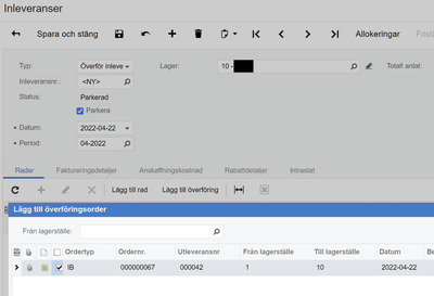 We have found that when we use ordertyp IB the errormessage says "Error creating purchase receipt. No Record found. TransferOrderNbr: ..."