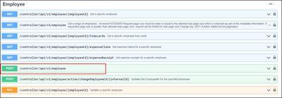 Hi Stefan, are you referring to Visma.net Expense Transaction API ? https://expense.visma.net/expense-services/services/swagger-ui/index.html If so, POST Employee is not exposed via that API but we'd recommend contacting your partner service for information in detail regarding that application.