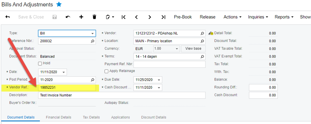For example: A customer is processing a Purchase Invoice, with the following data: