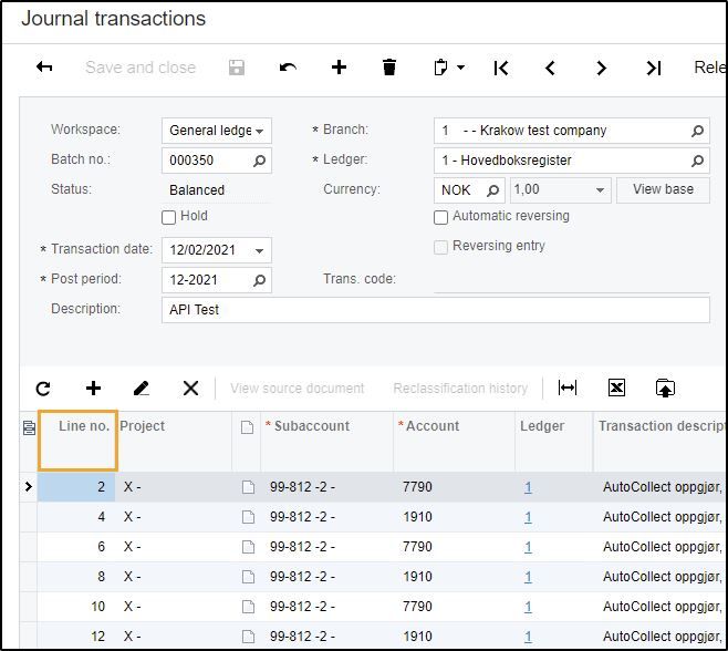 I'm creating new journal transaction entries with set lineNumbers, but Visma.net does not care about the numbers I send in. Is there any logic I'm missing here?