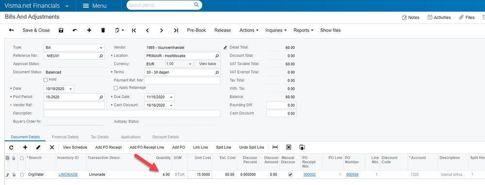 But i am also missing the line after i adjusted the invoice from 150 to 4 items. I need a line of 146 items. Where is it ?