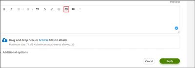 Images can be uploaded via the toolbar located in the reply section.