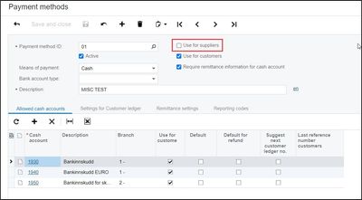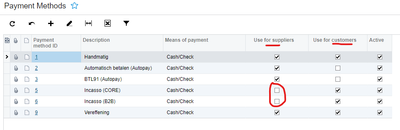 I would assume that "use for costumers" (i.e. debtors) makes something a debtor payment method. But maybe I am misunderstanding "use for suppliers".