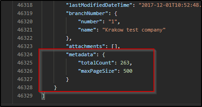 We'll emphasize this once again to get this aligned with the rest of the APIs as regular Pagination enforcement data represented in the DTO with max pagesize is wrapped in MetaData{ }