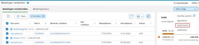We hebben de betaalopdracht al aangemaakt en vragen ons af of we deze via betaalstatus kunnen exporteren naar Excel.