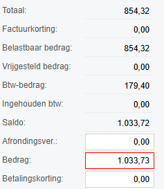 Hoe kan een afrondingsverschil opgelost worden? BTW bedrag in de inkoopfactuur is 179,41 ipv 179,40. Hierdoor komt Saldo niet overeen met Bedrag.