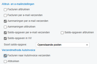 Ik neem aan dat er iets veranderd is? Vorige maanden werden de abo facturen van deze debiteurs gewoon verzonden met deze instellingen.