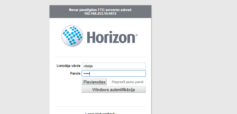Jā, nepaskatījos, ka kļūda ir par to, ka nav pieejams FTG serveris. Kļūdas paziņojumā ir norādīta konkrēta adrese. Vai tā ir pareiza (tā kas nokonfigurēta Horizon programmproduktos) un ir fiziski pieejama?