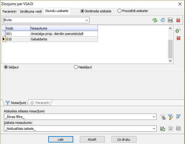 Samaksas veida aprakstā nostrādāto dienu un nostrādāto stundu uzskaite jāuzstāda Ir.