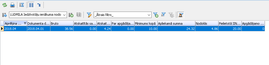 Vajadzētu pievienot bildi no: Personas kartīte -> Saistītie dati -> Aprēķinu informācija -> Iedzīvotāju ienākuma nodoklis -> Filtrā Aprēķina datumu izdzēst, Dokumenta datumā ielikt 04.2018 (sk. bilde)