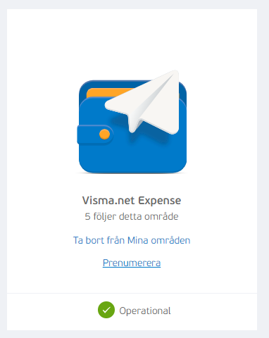 Du hanterar dina prenumerationer för ett produktområde från översiktssidan på respektive produkt, i rutan med produktikonen till höger på sidan.