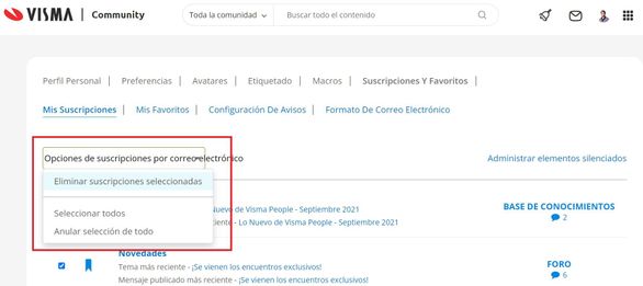 Sí, puedes hacerlo fácilmente en “Mis suscripciones”. Debes elegir las suscripciones que deseas eliminar y luego hacer click en “Eliminar suscripciones seleccionadas”.