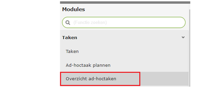 Binnen Taken en het overzicht openstaande taken is het niet mogelijk om te filteren op Ad hoc taken.
