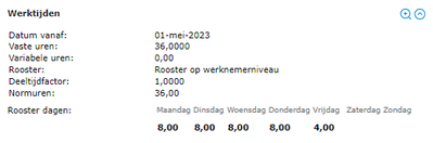 Op dit moment gebruiken wij nog voor gedefinieerde roosters met namen als "36u 8-8-8-8-4". Hierdoor is het in de sectie werktijden in 1 oogopslag duidelijk welke uren iemand werkt.