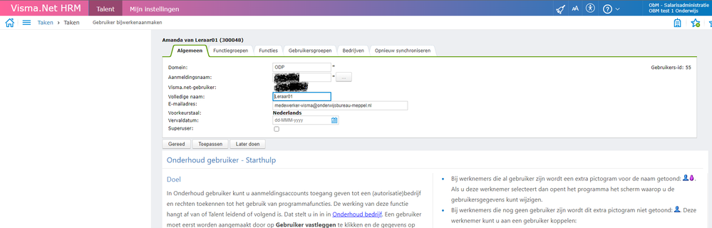 Voor een nieuwe medewerker is het niet altijd nodig om een gebruiker aan te maken, maar deze kan ook gekoppeld worden. Bij de taak gebruiker aanmaken/bijwerken mist de optie van koppelen, graag dit toevoegen.