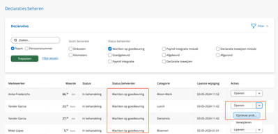 SA medewerker is per 1 mei in dienst en de voor 1 mei ingediende declaraties zijn niet zichtbaar voor deze SA medewerker.