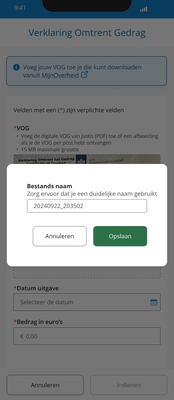 Dit idee zal waarschijnlijk een samenwerking tussen HRSS en de app zijn. Waar wij tegenaan lopen is dat personeelsdossiers worden vervuild door bestandsnamen die niet helder gedefinieerd zijn bij het uploaden van bijvoorbeeld de VOG via de app. Wij zouden graag per categorie een vaste bestandsnaam willen selecteren of de mogelijkheid hebben om de bestandsnaam nog te wijzigen voordat deze het personeelsdossier in gaat. Bij voorkeur bij het afhandelen van de mutatie in Self Service. Ik plaats hem toch hier omdat het verzoek nadrukkelijk ontstaat vanuit de nieuwe functionaliteiten in de app.