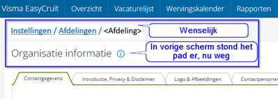 Na het klikken op een een functionaliteit is het niet meer snel inzichtelijk waar je mee bezig bent in de applicatie.