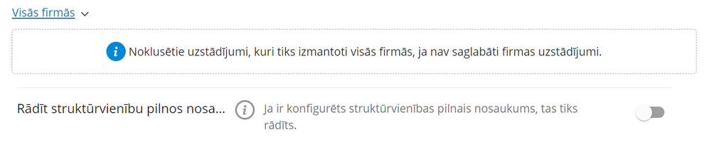 Uzstādījumi papildināti ar jaunu sadaļu “Struktūrvienības”, kur, atzīmējot iespēju “Rādīt struktūrvienību pilnos nosaukumus”, tie tiks attēloti lietotnēs “Meklēt kolēģi”, “Prombūtnes kalendārs”, “Mani dati”, “Mani rīkojumi un vienošanās”, ‘’Rīkojumi un vienošanās”, “Esmu iepazinies” un “Mani darbinieki”.