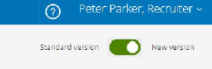 Lai piekļūtu jaunajai kandidātu pārvaldībai, noklikšķiniet uz slēdža (kā redzams attēlā zemāk) pieteikumu apstrādes lapā vai kandidātu profila lapās: